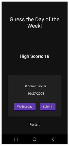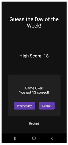 This game asks you to enter the day of the week for a particular a date (e.g., Monday, Friday, etc.) testing your knowledge of the Doomsday Algorithm. Great for date nerds, numberphiles, and other spectrumy adjacent thinkers.